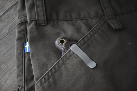 Schwarz Knives Overland Sport | Deep Carry Leather Pocket Sheath, Mummert Clip