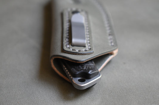 Griffin Co. Scout 2.5 | Premium Custom Leather Pocket Sheath, Titanium Clip, Grey