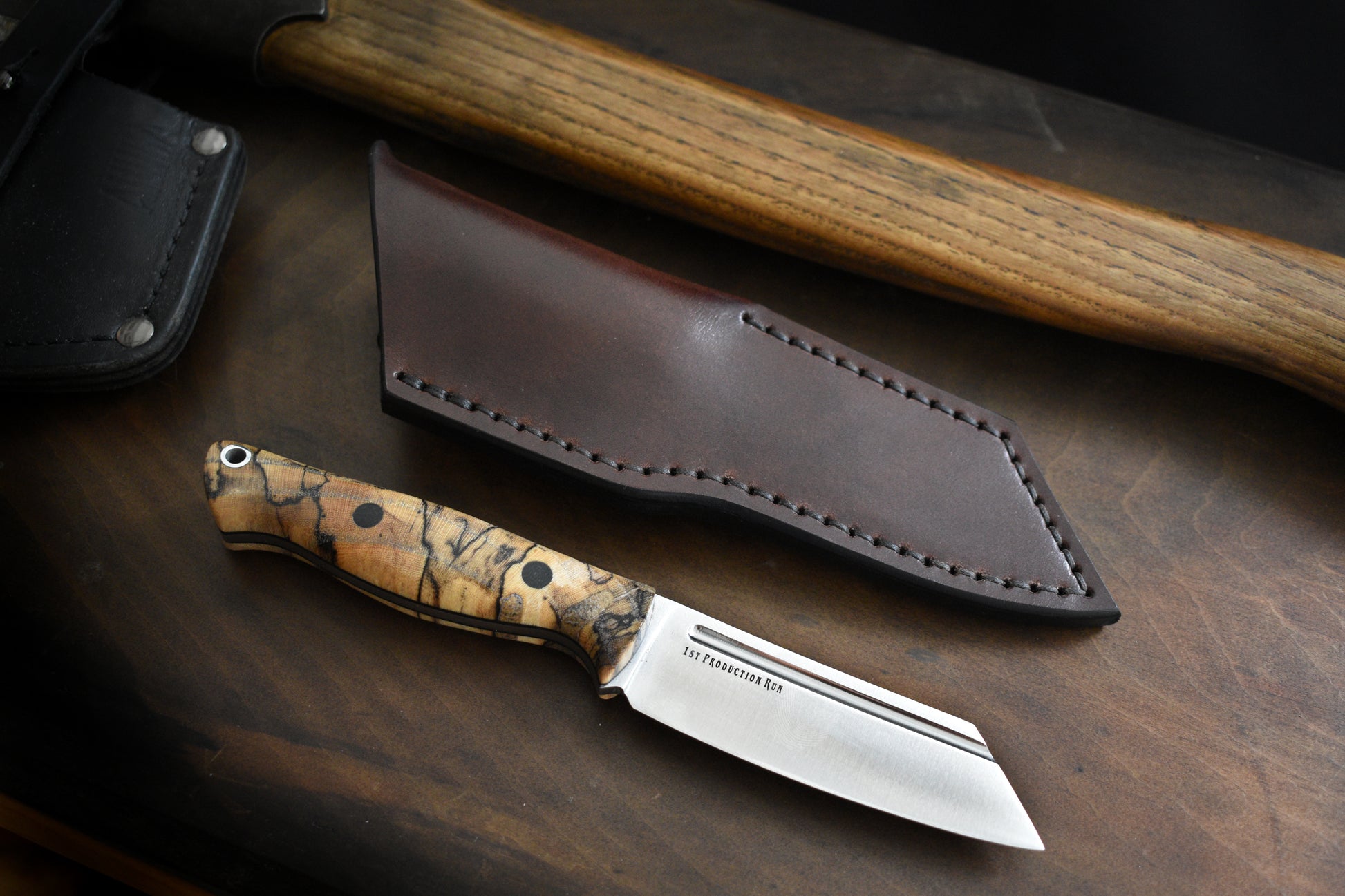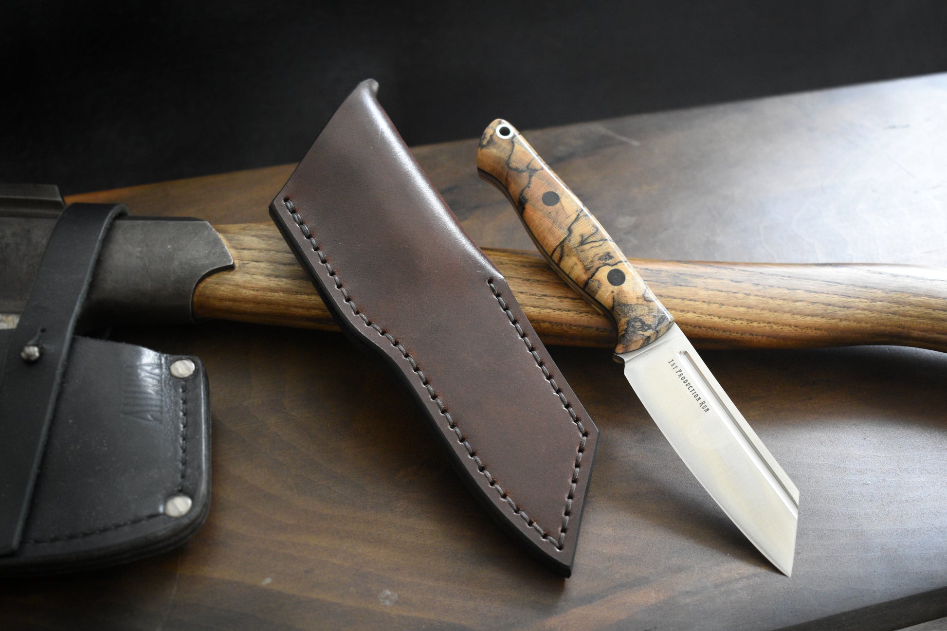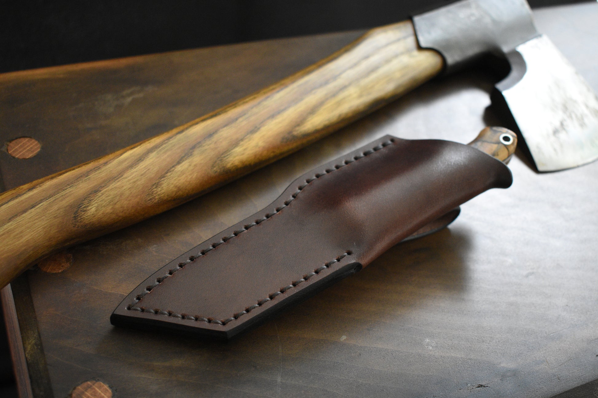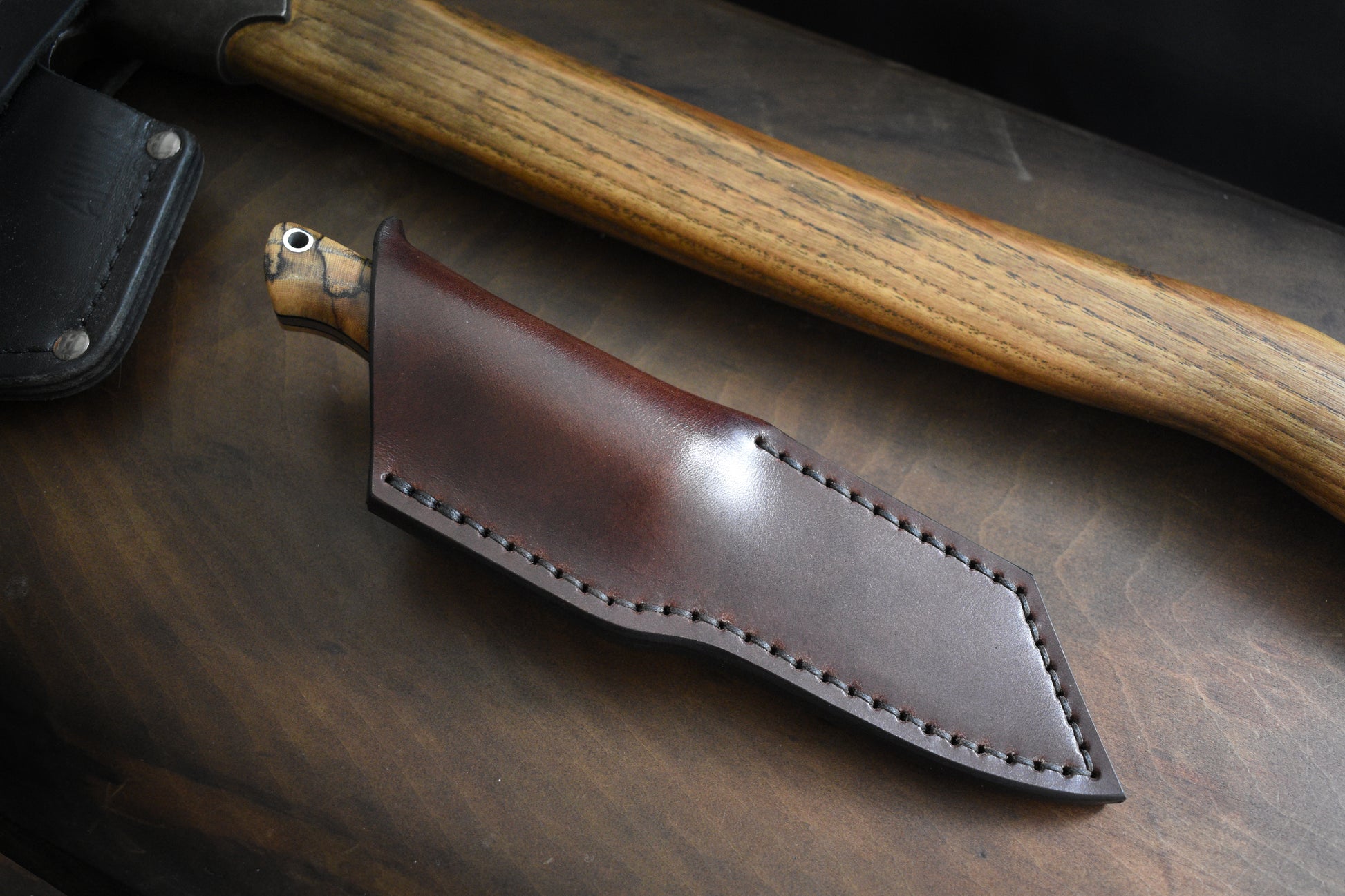 A meticulously handcrafted vertical belt sheath for the Bark River Taskmaster.