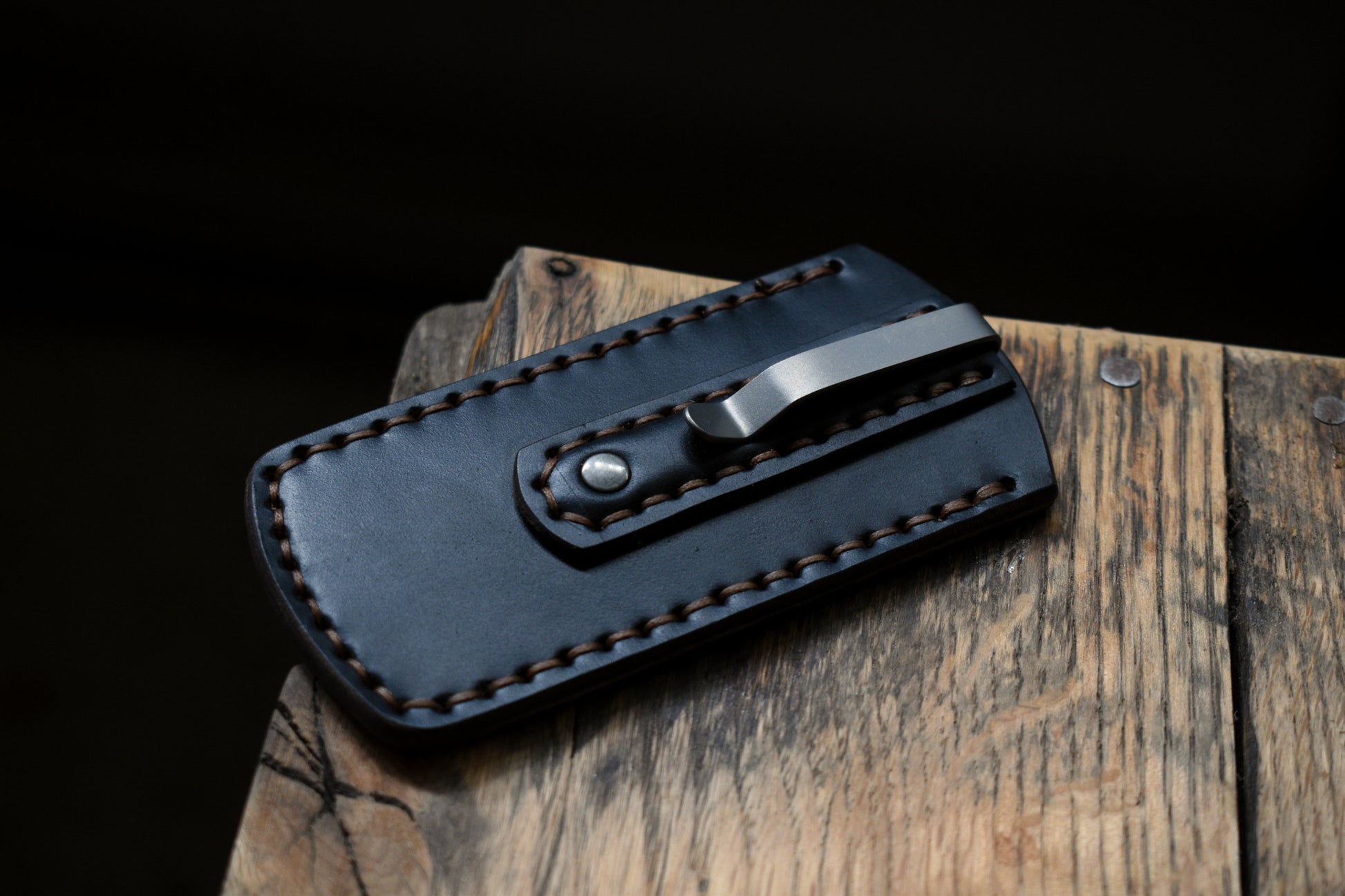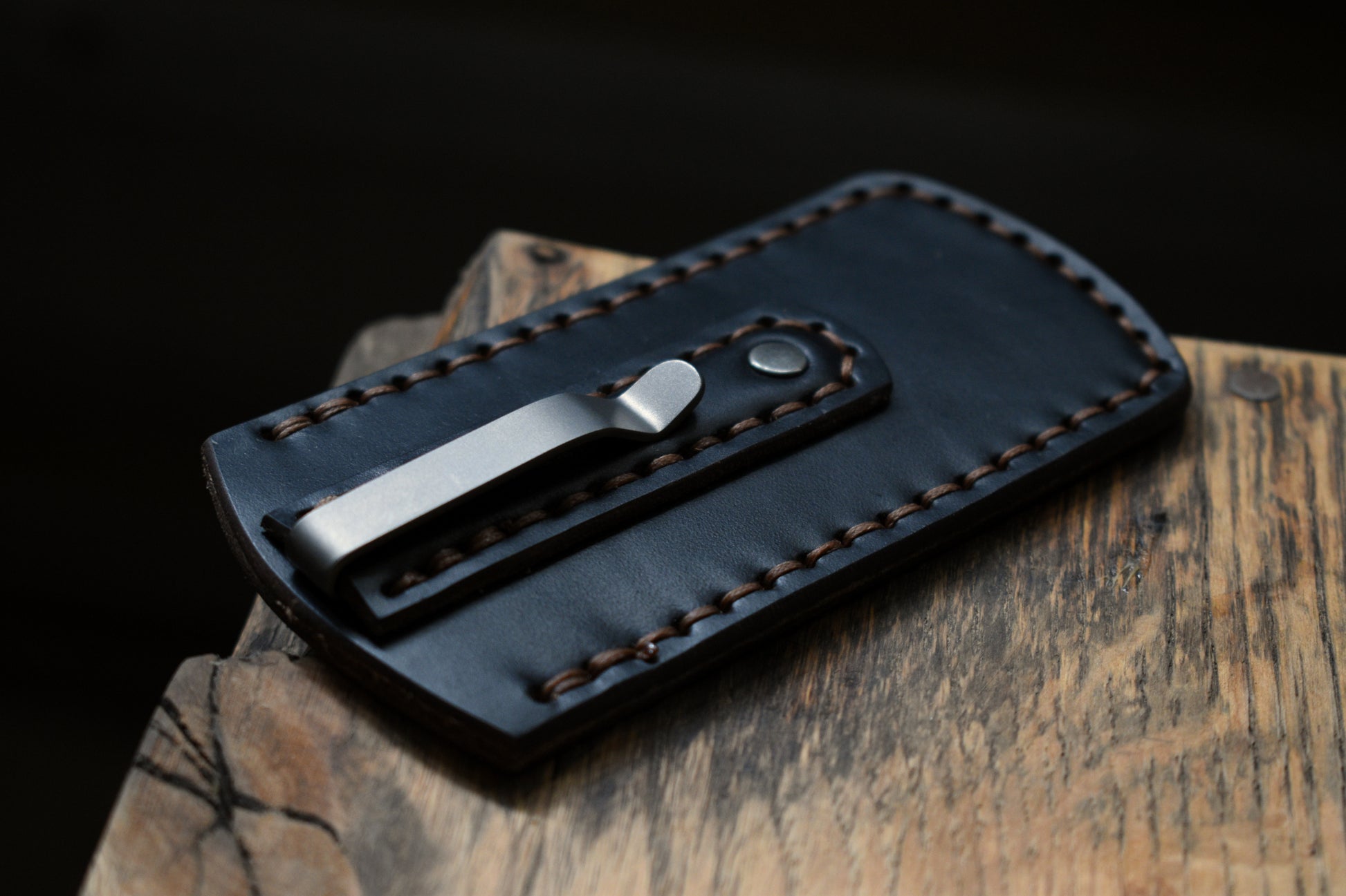 Black Horween Chromexcel Leather Titanium Clip Slip
