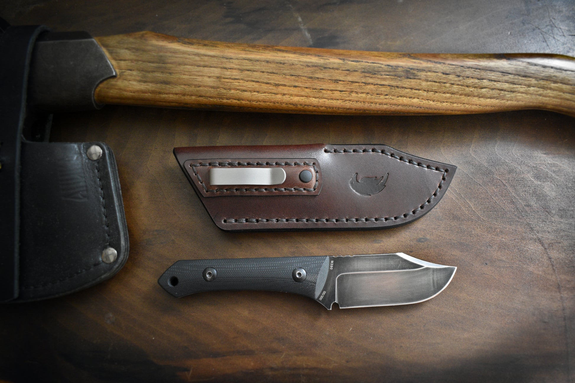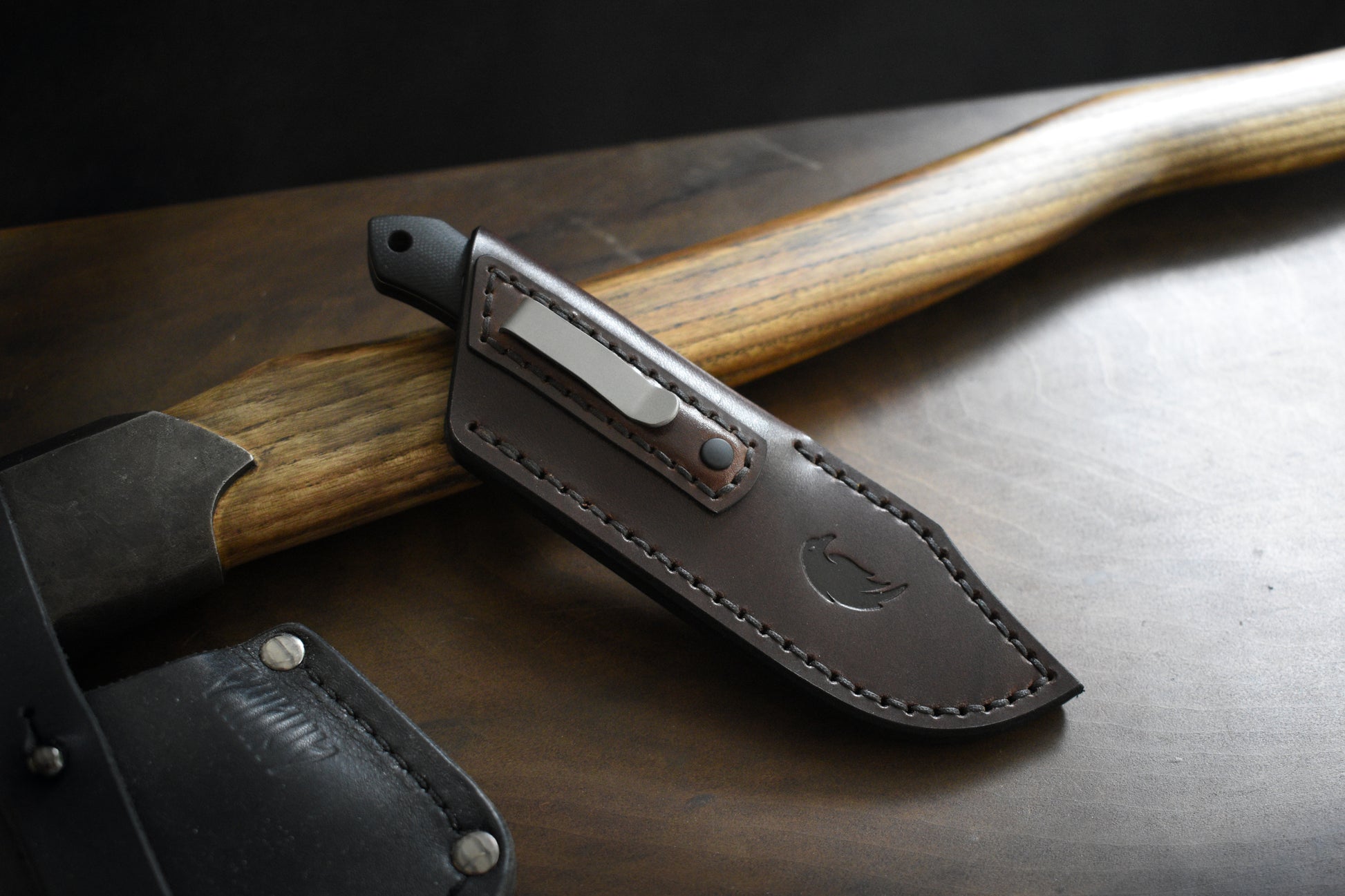This handcrafted leather pocket sheath is tailor made for the EDC1 Bowie from BMKT. Keep your blade handy at all times with this durable full grain leather daily carry sheath.