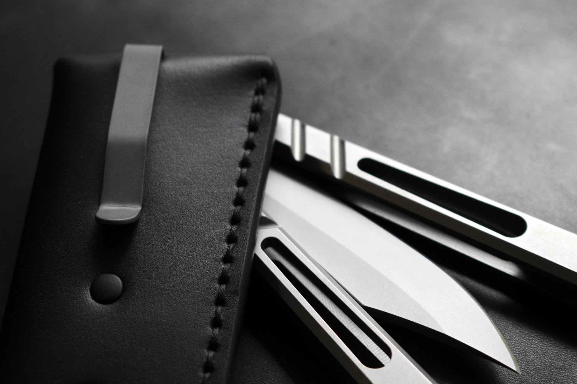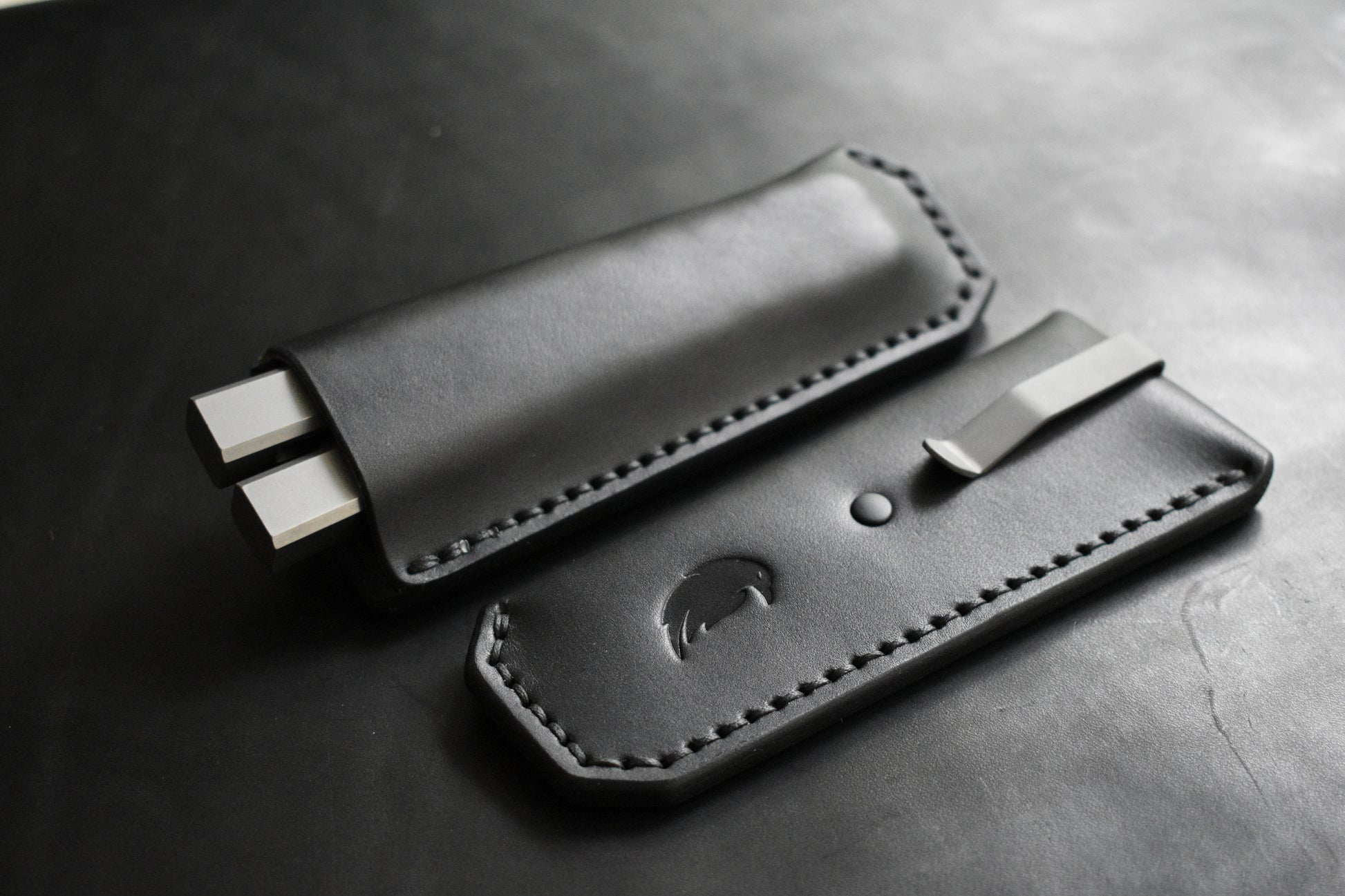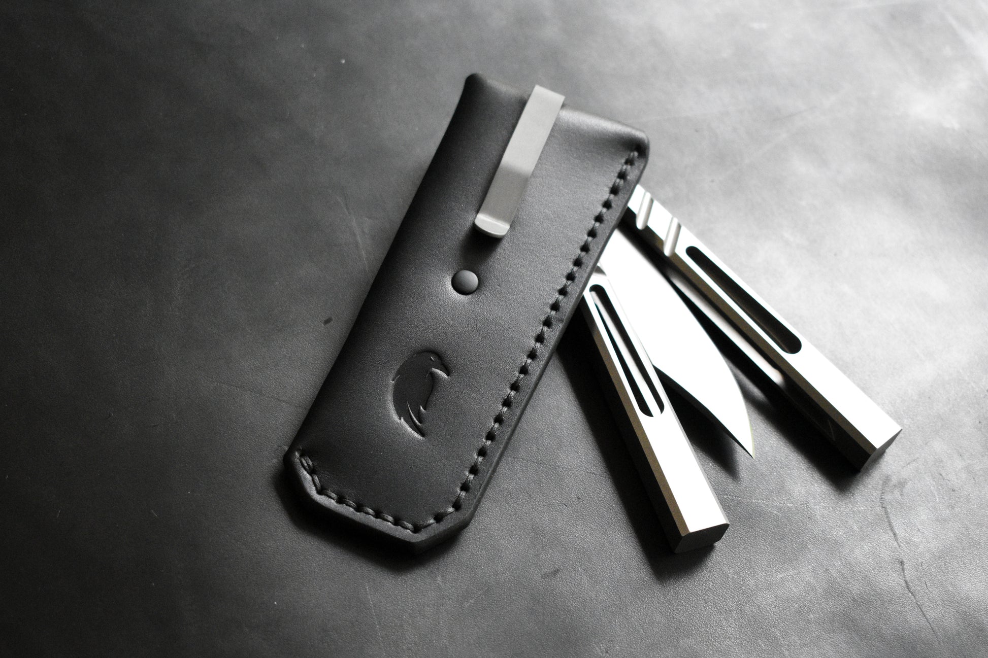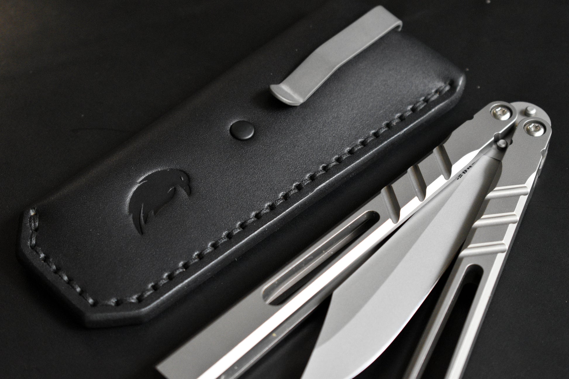 Deep Carry Pocket Sheath for Balisong Knives | Titanium Clip, Black Leather