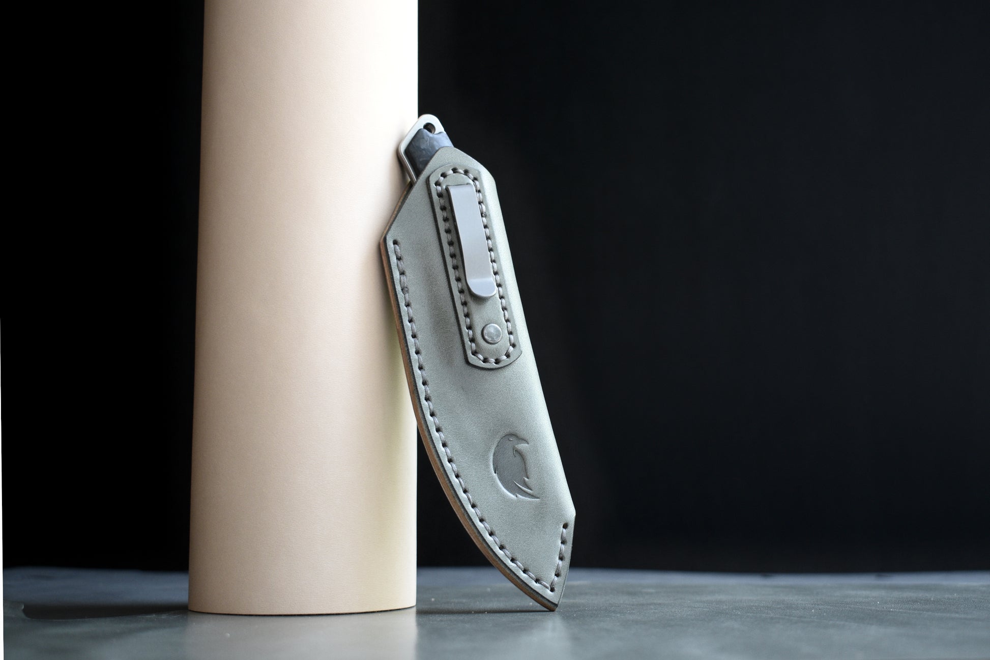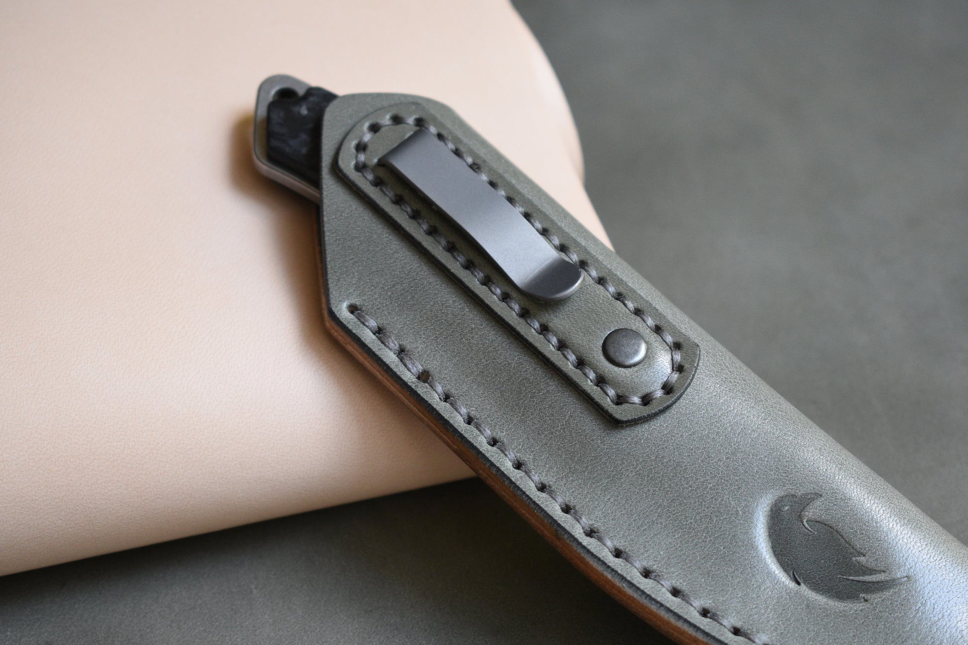 Griffin Co. Scout 2.5 | Premium Custom Leather Pocket Sheath, Titanium Clip, Grey