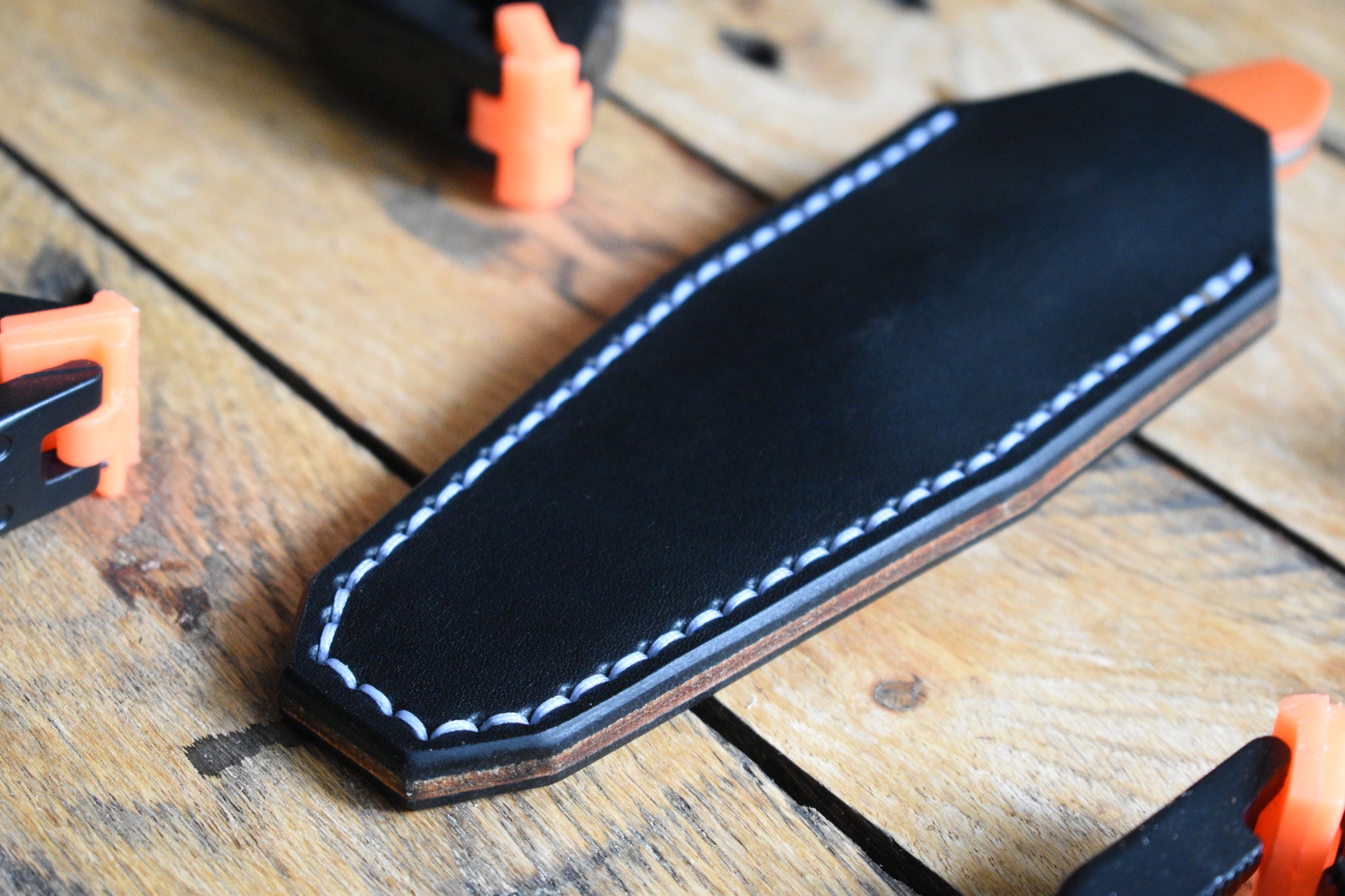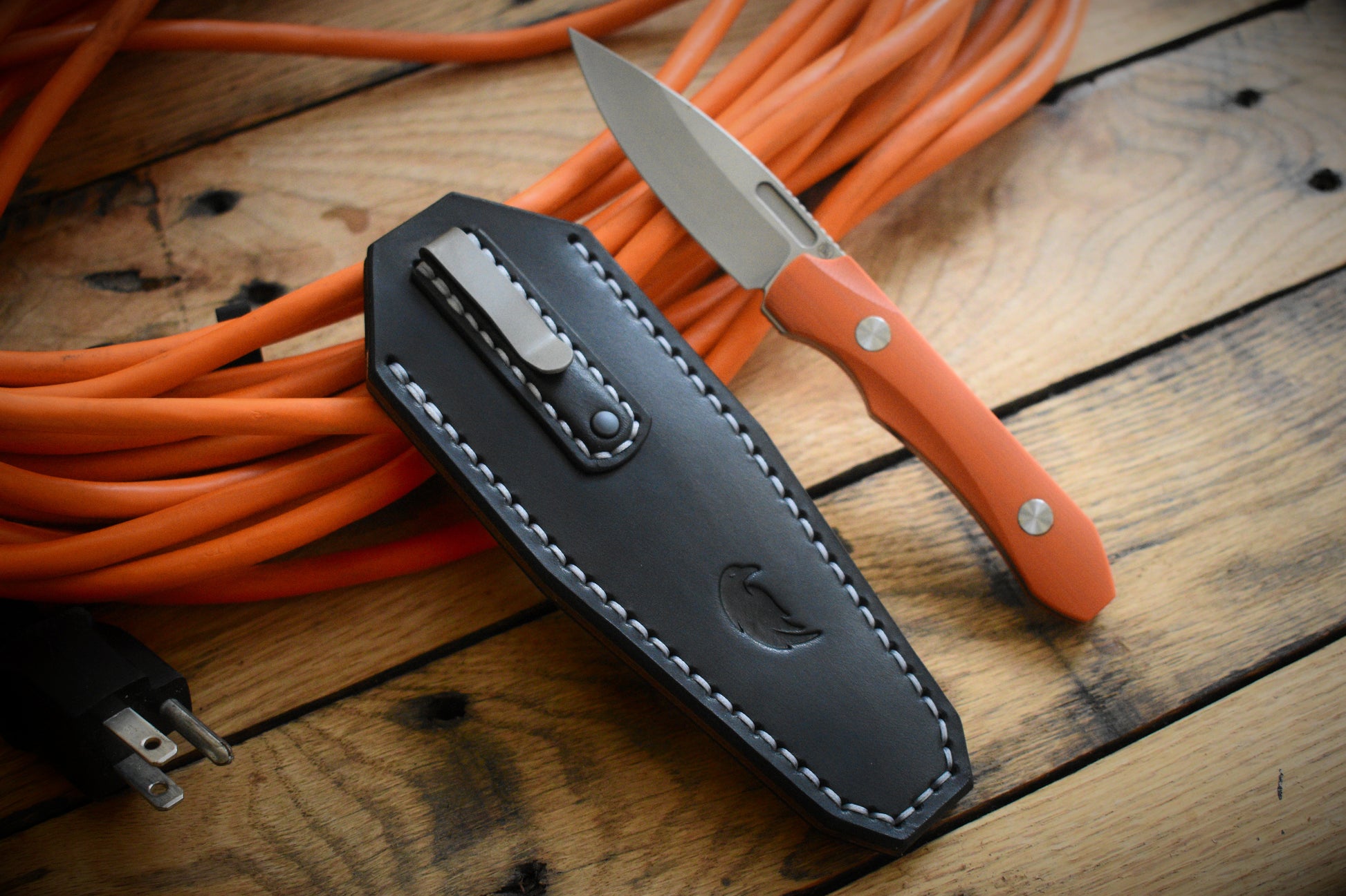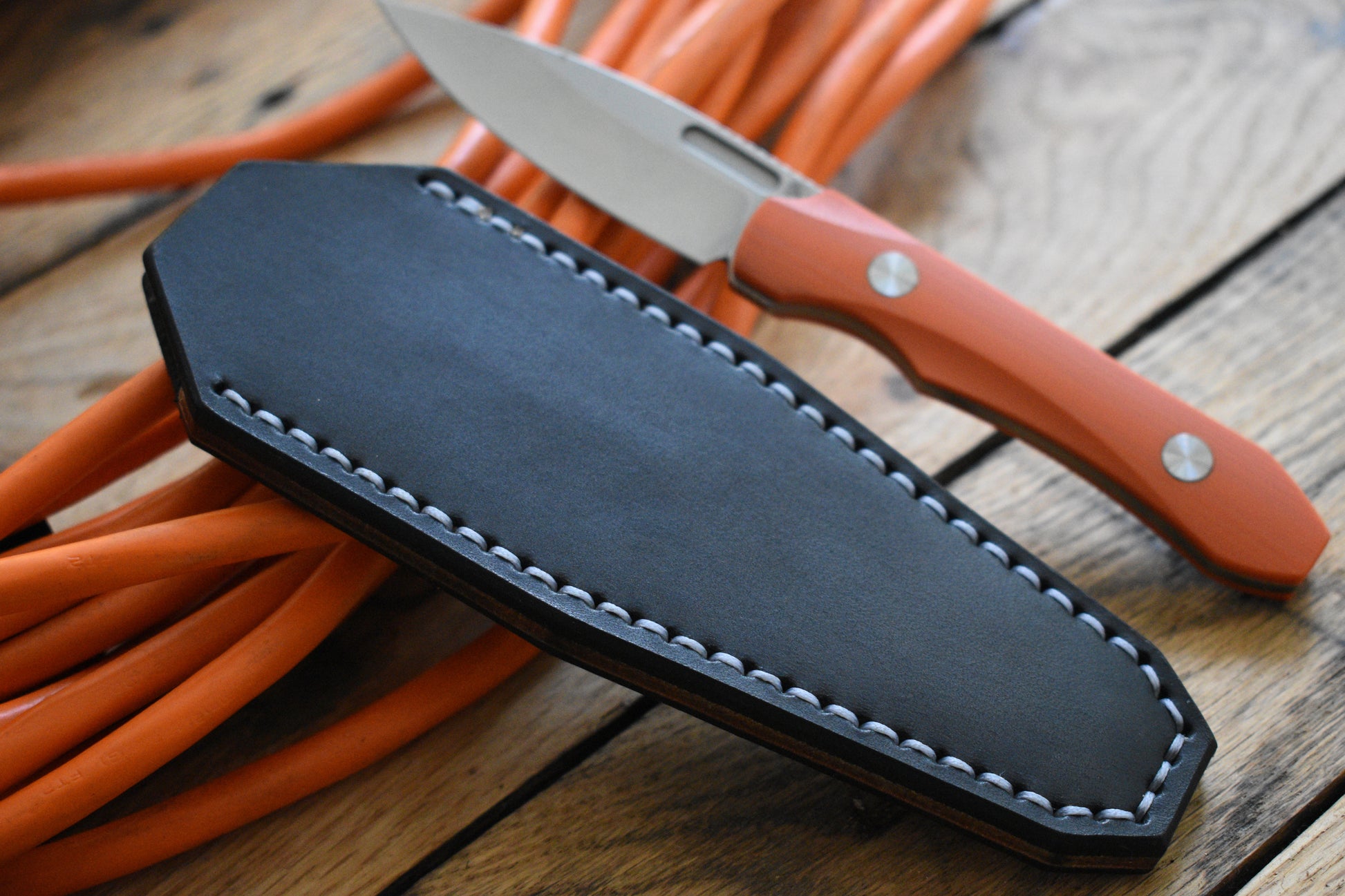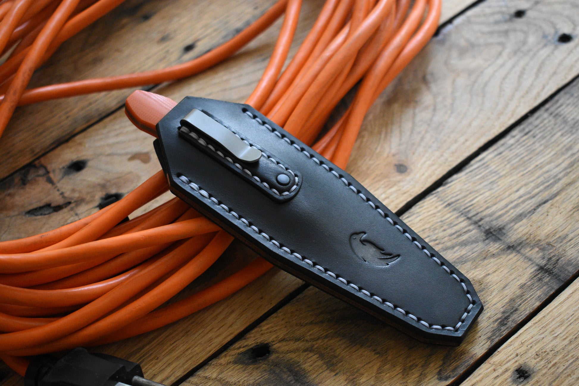 A full grain leather pocket sheath tailor fitted to the Griffin X Series EDC Fixed Blade. Precision handmade from start to finish.
