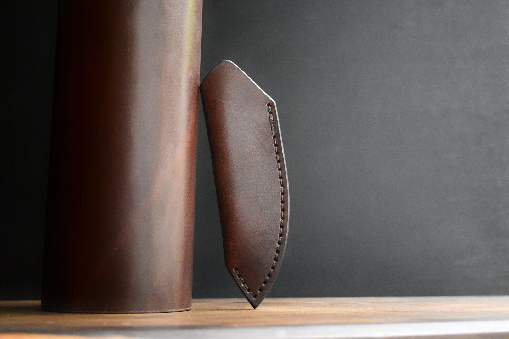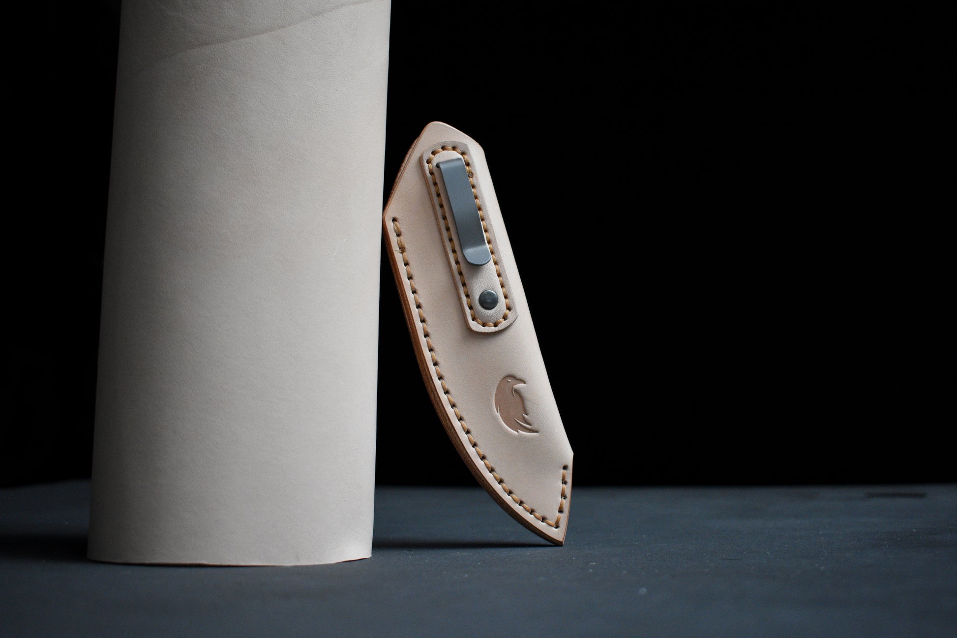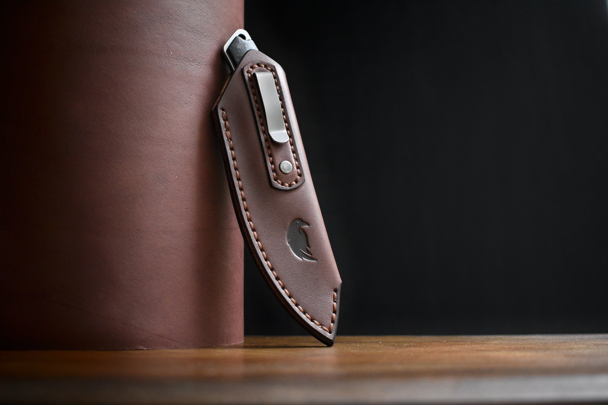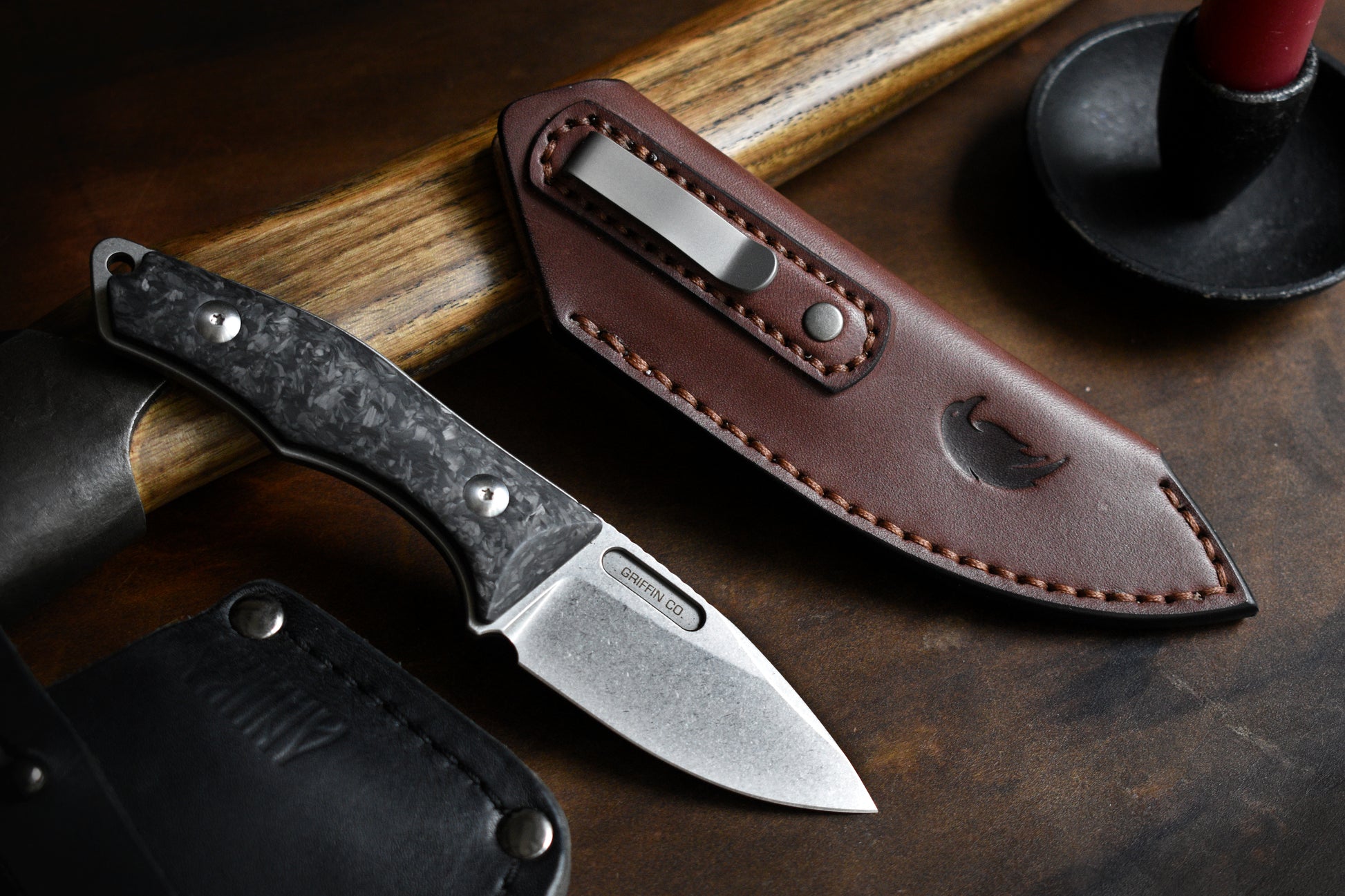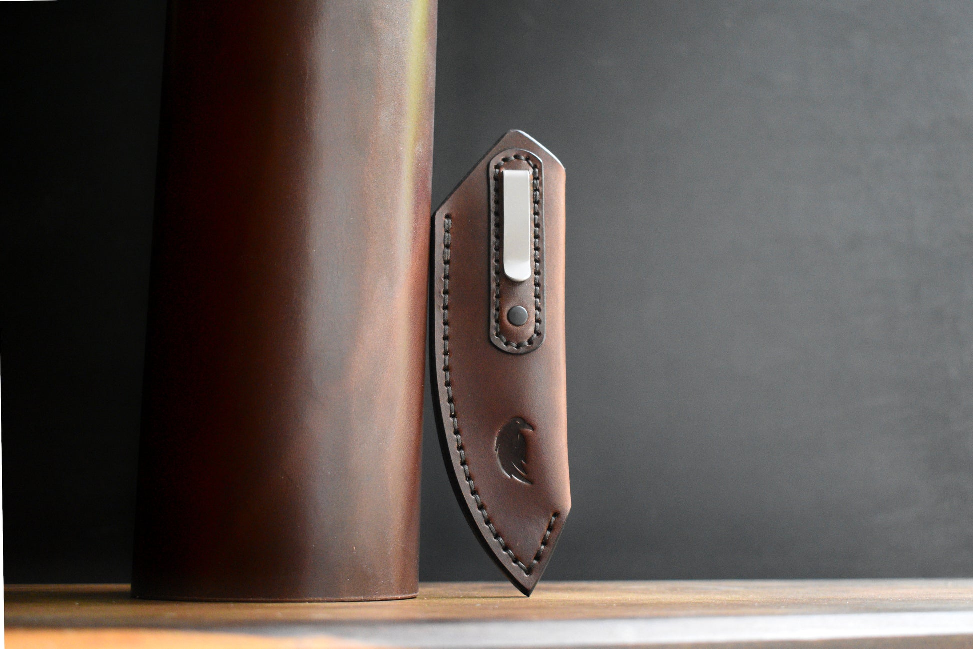 A full grain leather pocket sheath tailor fitted to the Griffin Scout 2.5. Entirely handmade from start to finish.